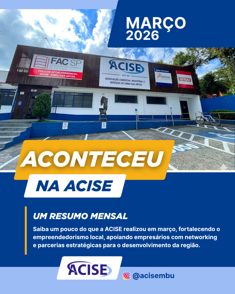 O mês de março de 2026 encerra com inúmeras atividades para o ambiente de negócios em Embu das Artes, tendo a ACISE (Associação Comercial, Industrial e Serviços de Embu das Artes) como protagonista na articulação entre empresários, poder público e entidades parceiras. A primeira edição do informativo “Aconteceu na ACISE” sintetiza um período marcado por ações estratégicas que impactam diretamente a economia local, responsável por significativa geração de emprego e renda no município. Dados do setor apontam que o comércio regional mantém trajetória de recuperação e crescimento, com projeção de alta de aproximadamente 4,5% no faturamento no primeiro trimestre de 2026. Esse avanço está diretamente ligado à retomada do consumo, ao fortalecimento das micro e pequenas empresas e à atuação de entidades como a ACISE, que promovem integração e suporte contínuo ao empresariado.