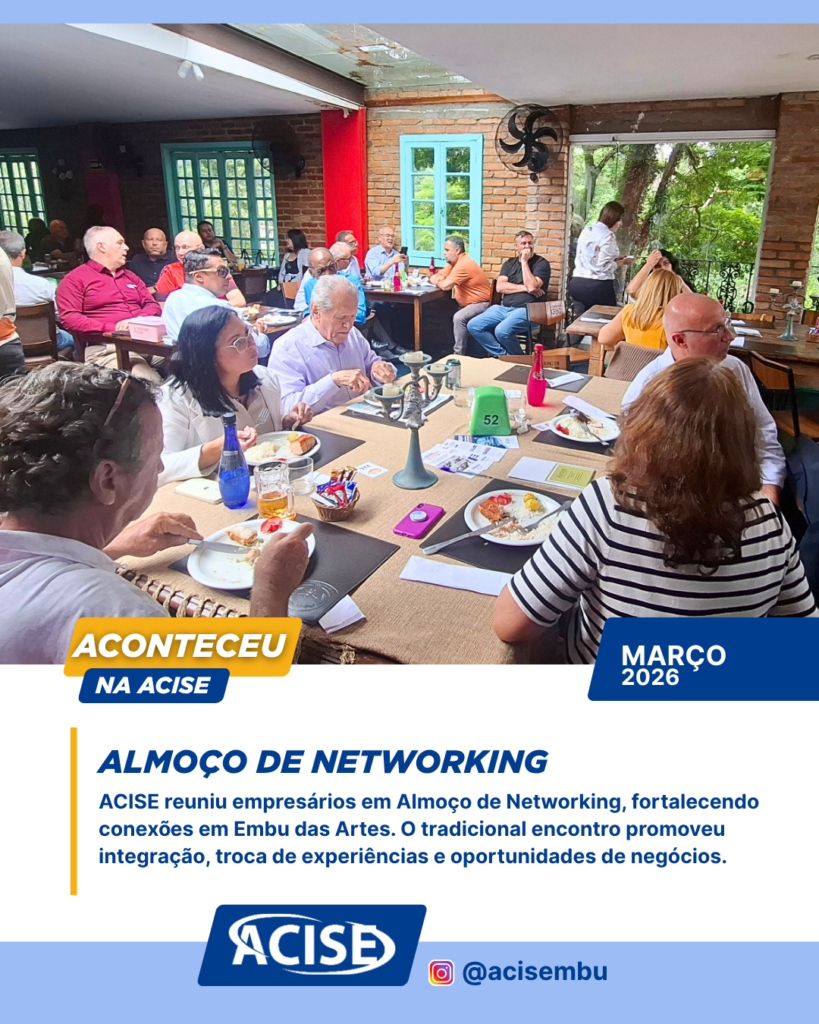 Ao integrar os setores de Indústria, Comércio e Serviços, a ACISE reforça seu papel como agente estratégico no desenvolvimento econômico. Mais do que representar interesses, a entidade atua como catalisadora de oportunidades, promovendo conexões que refletem diretamente no fortalecimento do mercado regional. O balanço de março evidencia que a atuação associativa continua sendo um diferencial competitivo. Em um cenário econômico desafiador, a união entre empresários, entidades e poder público se mostra essencial para garantir crescimento consistente, geração de empregos e desenvolvimento sustentável em Embu das Artes e região.