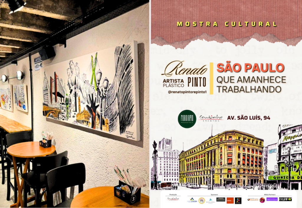 Essa integração entre economia e cultura não apenas embeleza os espaços, mas também cria um circuito pulsante de visitação, convivência e pertencimento. Um exemplo inspirador vem do Forniamo Paninoteca, na Avenida São Luís, 94, que abraçou a proposta do produtor cultural Maurício Coutinho e do artista plástico Renato Pinto. Ali, entre o aroma de café e pães artesanais, nasce um verdadeiro ponto de encontro entre sabor e sensibilidade. A exposição “São Paulo que amanhece trabalhando…”, em cartaz de 02 a 22 de outubro, no Forniamo Paninoteca, convida o público a enxergar o Centro com novos olhos — olhos que reconhecem beleza, resistência e história.