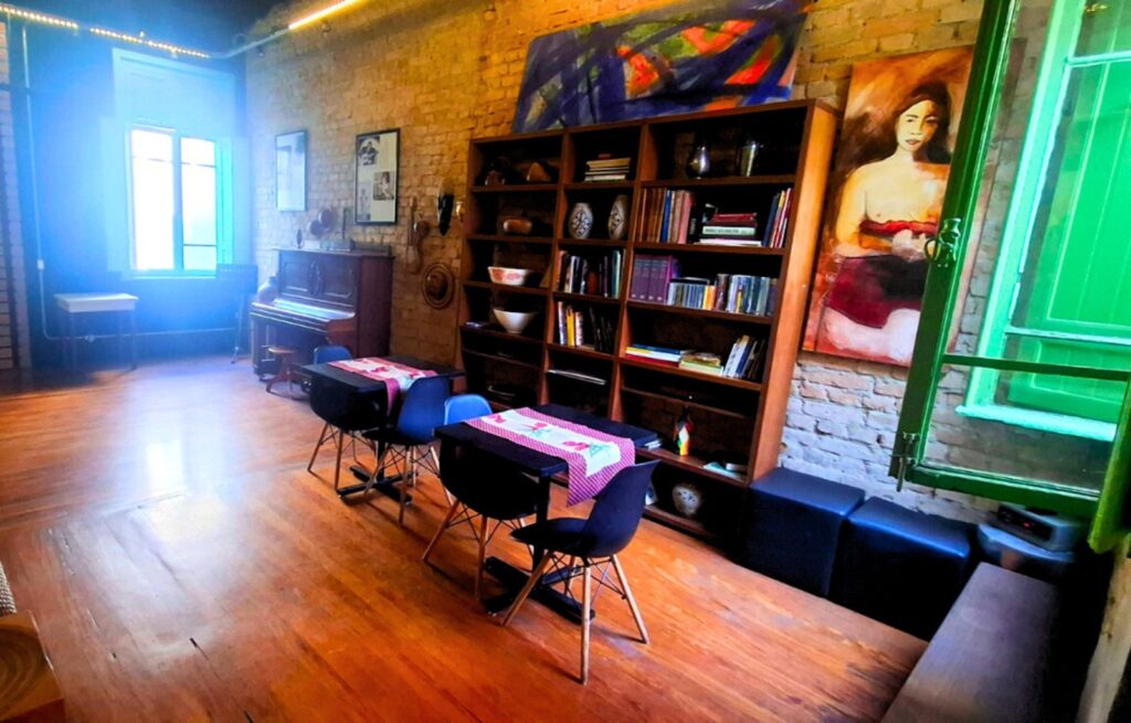 Construído em 1905, o imóvel, que já funcionou como pensão, armazém e conjunto de salas comerciais ao longo do século XX, ficou por anos subutilizado, acompanhando a decadência gradual do centro. A família, proprietária do casarão desde 1970, observou sua deterioração e decidiu intervir antes que o patrimônio se perdesse. O objetivo era claro: recuperar a autenticidade da construção e devolver o edifício ao convívio cultural da cidade. E renasceu como um espaço pulsante de cultura após um processo de restauro conduzido com rigor técnico, respeito à sua materialidade original e sensibilidade ao modo de vida contemporâneo.